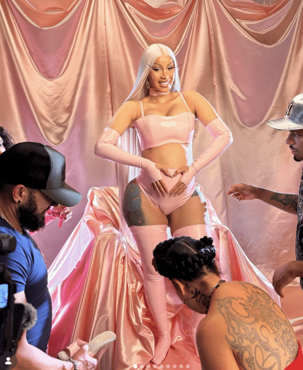 During the posts, Cardi’s baby bump made a surprise appearance, revealing her most recent child with football player Stefon Diggs, which at the time wasn’t announced yet.