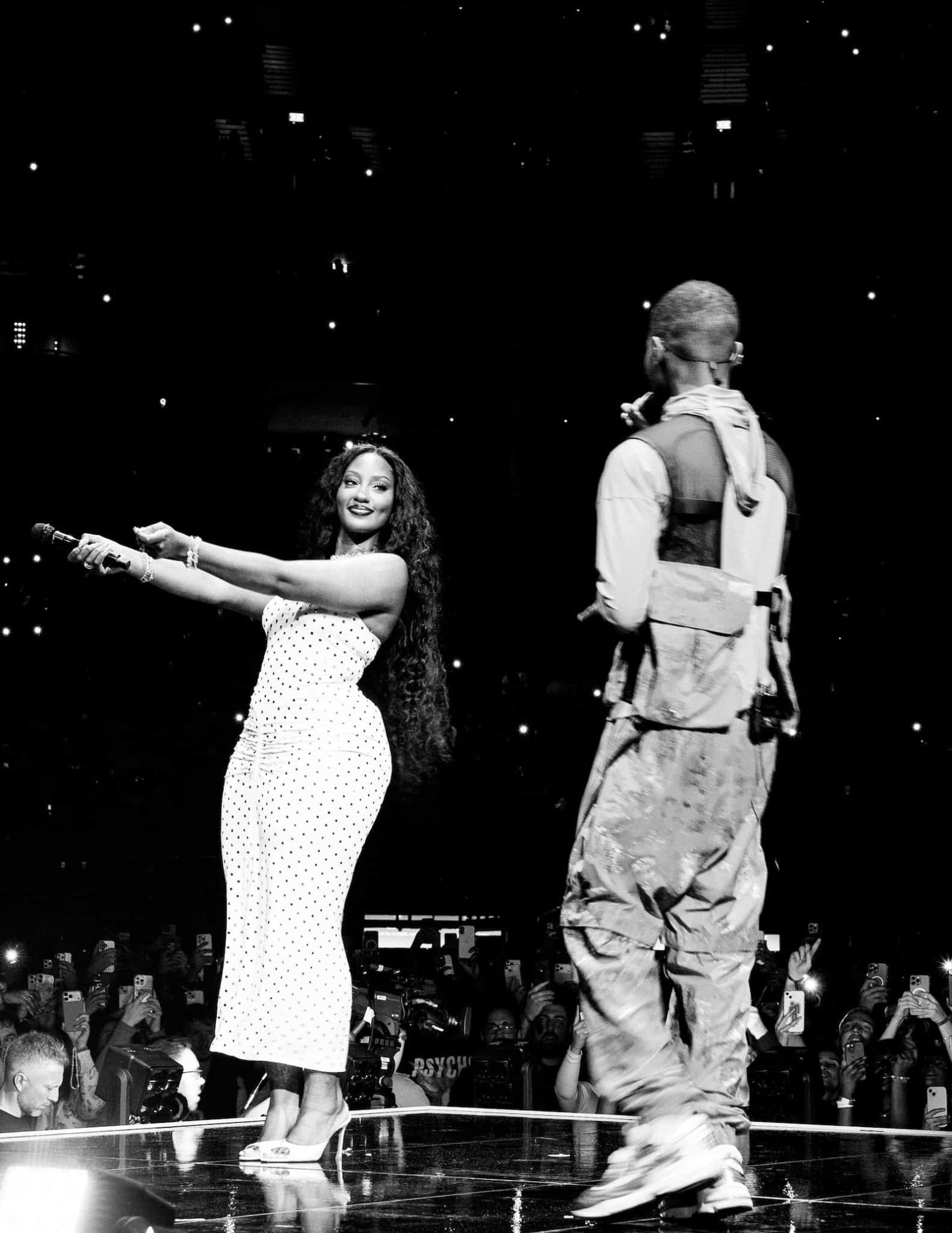 On night two of the jaunt’s London stop, the MC surprised the masses by bringing out Tems to perform their mega-hit ‘Raindance.’