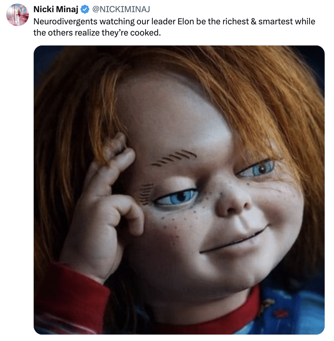 “Neurodivergents watching our leader Elon be the richest & smartest while the others realize they’re cooked..”