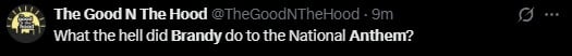At writing, Brandy has not issued a response to the hoopla over her rendition.