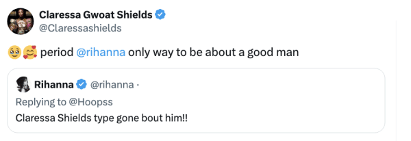 “Period @rihanna only way to be about a good man.”