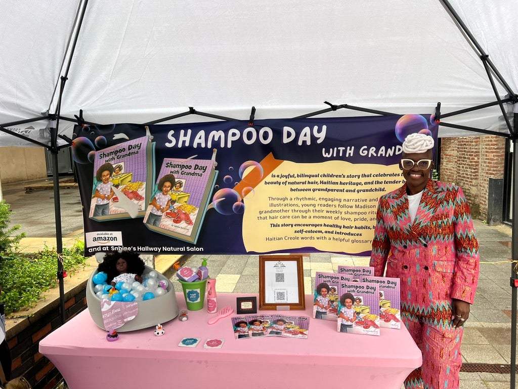 Sabine Bellevue knew what it meant when she watched her grandmother grab the Dax pomade off the counter – it was wash day. The author, salon owner, and veteran hair stylist is celebrating that wash day tradition with her recently released children’s book, Shampoo Day With Grandma.