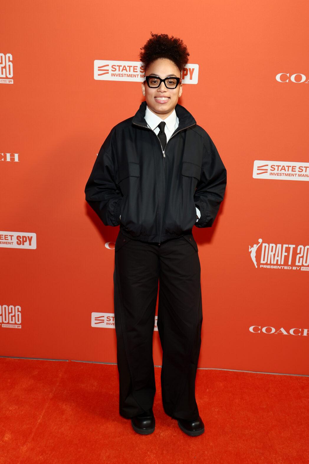 The tip-off was a lively “orange” carpet presented by Coach, and from the moment arrivals began, the energy was undeniable. Players lingered a little longer and smiled wider while greeting each other, hyping one another up, soaking in the kind of attention that hasn’t always been guaranteed. Former player and sports commentator Chiney Ogwumike shimmered in a sparkly black collared two-piece, while Minnesota Lynx player Courtney Williams brought a cool, tailored edge in a leather jacket layered over a white shirt and tie with black slacks and shades. Then came the new class.