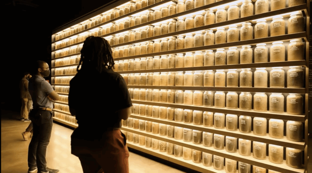The museum smoothly transitions from era to era, weaving a story of how slavery morphed into Jim Crow and lynching, providing firsthand accounts of what people witnessed and stated. Medium-sized jars contain soil from the grounds where Black victims were lynched and took their last breaths.