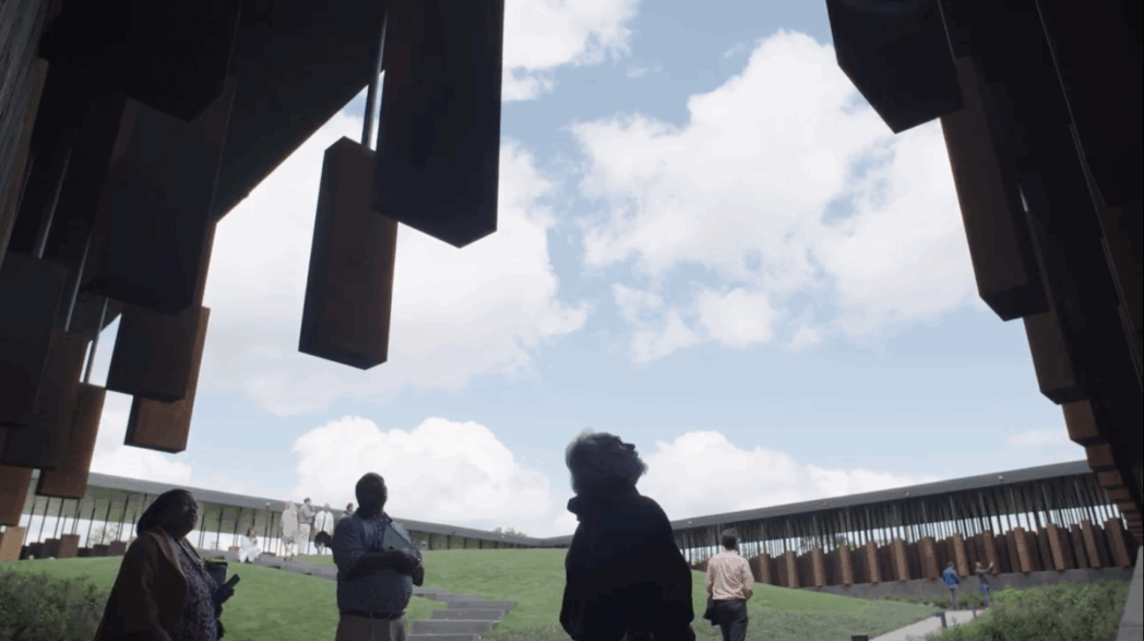 At the National Memorial for Peace and Justice, a sprawling six-acre park on a hill, visitors slowly ascend toward molasses-colored monuments of steel, greeted by hints of the stories they will encounter at the top.